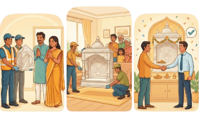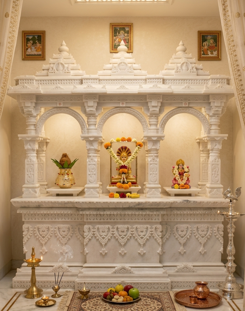 Choose the perfect marble mandir for your home – handcrafted designs starting from ₹50,000.